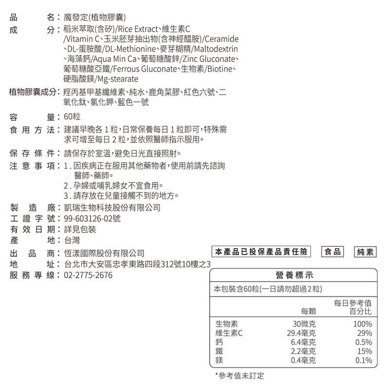 - 注意事項:請洽詢醫師或營養師有關食用本品之意見;
